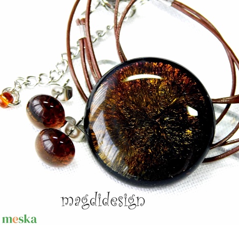 Galaxis aranyfényben üvegékszer szett, nyaklánc, stiftes fülbevaló