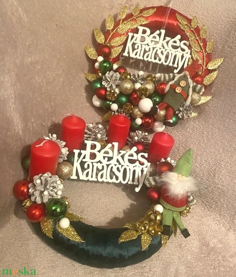 - Anyaga: szaténszalag, termések, gömbök, szalmakoszorú, gyertya