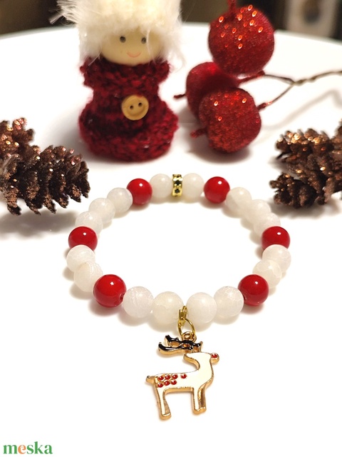 Karácsonyi ásványkarkötő rénszarvas medállal