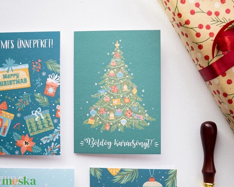 Ajándékozás öröme Karácsonyi Képeslap, karácsonyi üdvözlő lap, adventi képeslap.