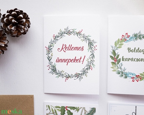Zöldágas Karácsonyi Képeslap, karácsonyi üdvözlő lap, adventi képeslap.