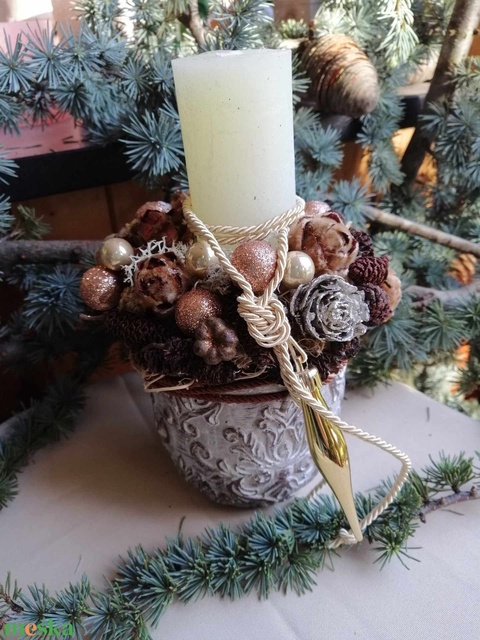 Karácsonyi asztaldísz barokk mintás kaspóban