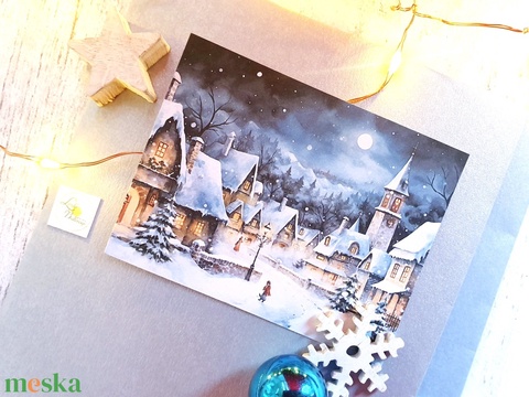 karácsony, karácsonyi ajándékozás, karácsonyi képeslap, üdvözlőlap, ajándékkísérő, karácsony, képeslap, állatos, téli, karácsonyi, karácsonyiképeslap, ajándékkísérő, havas, rajz, festmény, egyedi, télitáj, táj, hóesés, vásár, város, szentendre, falu, házak, utcakép, hangulatos, esti, templom, winter, wonderland