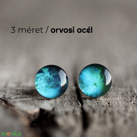 Zöldeskék világűr orvosi acél pötty fülbevalók