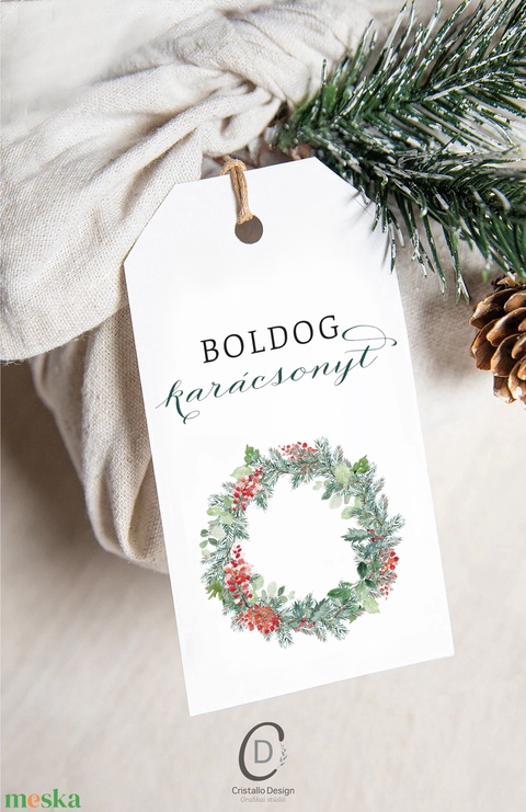 Karácsonyi ajándékkísérő, greenery ajándékátadó címke 6 db