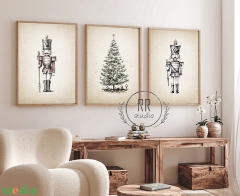 Vintage diótörő, kép, antik, karácsonyi falikép, print, dekoráció, karácsonyfa