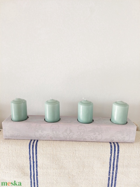 Fa adventi asztalközép asztaldísz gyertyatartó- pasztell lila- ezüst