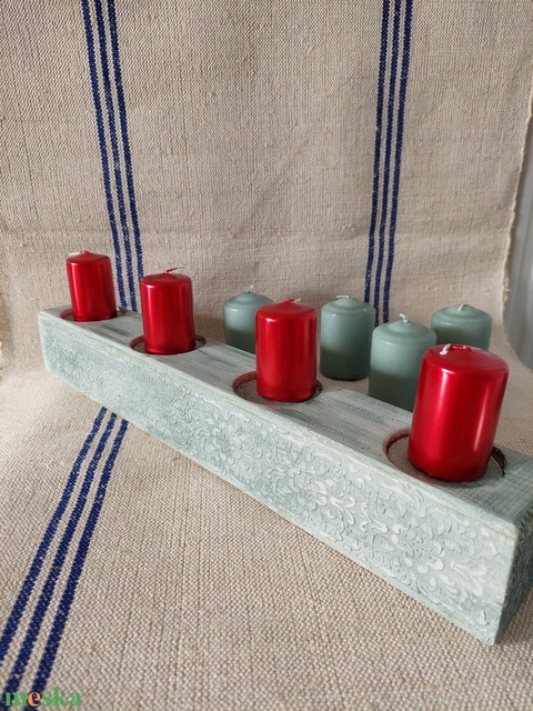 Fa adventi asztalközép asztaldísz gyertyatartó- vintage zöld