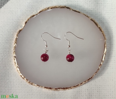 Sötét rózsaszín tigrisszem ásvány fülbevaló