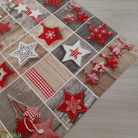 Ünnepi asztalközép, terítő - csillagok, rusztikus alapon