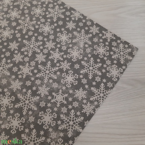 Ünnepi asztalközép, terítő - hópelyhek, szürke alapon