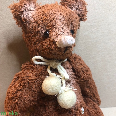 - Anyaga: pamut steiff, ónix, hematit, polieszter, bőr, filc, gyapjú