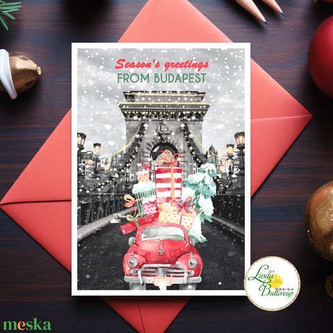 Budapesti Karácsonyi Képeslap, Adventi Képeslap, Karácsony, üdvözlőlap, Budapest, villamos, parlament