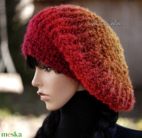 BORBÁLA / bíbor alkony - exkluzív kézzel kötött mohair barett sapka XXL