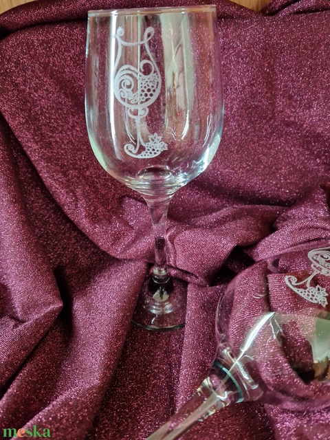 Egyedi gravírozott borospohár szett, amiket rózsa mintájának sziluettje díszít.