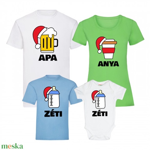 Karácsonyi családi póló szett- sör,kávé,tej (saját névvel)