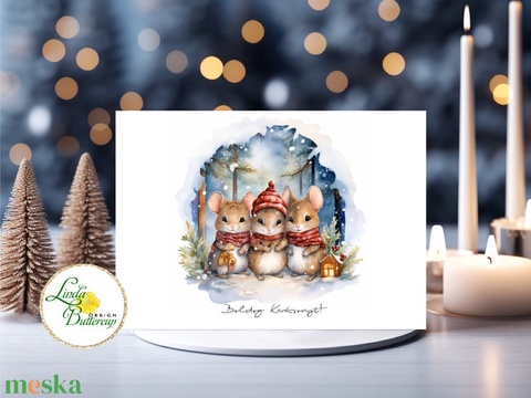 karácsony, karácsonyi ajándékozás, karácsonyi képeslap, üdvözlőlap, ajándékkísérő, karácsony, képeslap, állatos, téli, erdeiállat, karácsonyi, karácsonyiképeslap, ajándékkísérő, erdei, erdő, egeres, egér, aranyos, cuki, adventi, lap, név, egérke, havas, télitáj, család, vízfesték, anya, apa, gyerekek