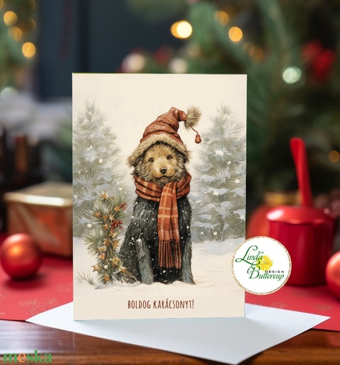 Vintage kutyás, kutyusos, Karácsonyi Képeslap, vinatge, karácsonyi üdvözlőlap, ünnepi képeslap, régi, vintage