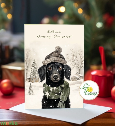 Vintage kutyás, kutyusos, Karácsonyi Képeslap, vinatge, karácsonyi üdvözlőlap, ünnepi képeslap, régi, vintage