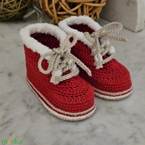 Fűzős babacipő plüss szegéllyel (piros)
