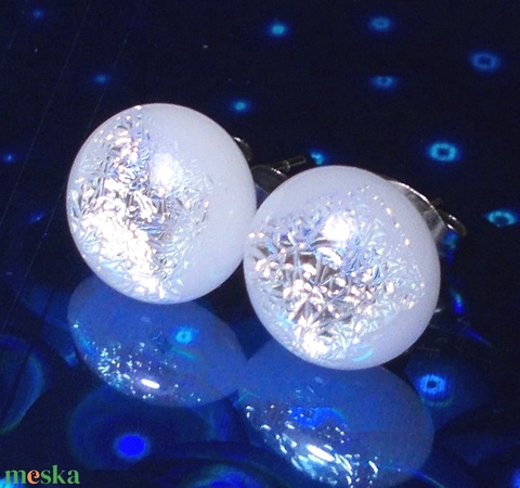 ORVOSI FÉM! Ezüstös-fehér üveg fülbevaló , ajándék nőnapra, lányoknak, ballagásra, névnapra, születésnapra.