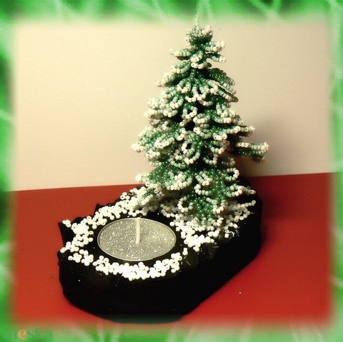 Gyöngyből készített fenyőfa mécsestartó GYV14-1