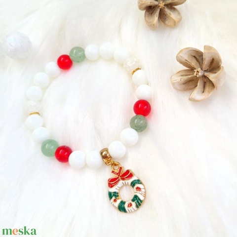 Karácsonyi koszorú ásványkarkötő (fehér)