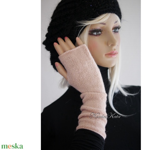 BOSZI-KESZTYŰ / angora - exkluzív kézzel kötött kesztyűszár, kézmelegítő / nude