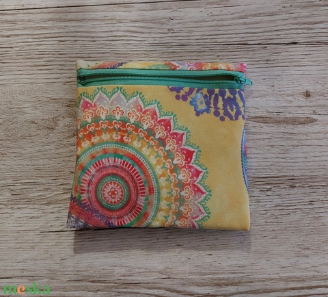 Egészségügyi betét tartó,intim betéttartó,vízhatlan anyaggal bélelve,sárga alapon mandalás vászonból, NoWaste