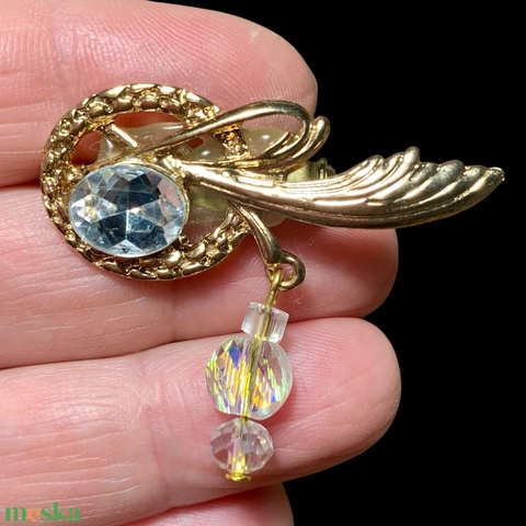 Vintage BROSS az 1980-as évekből, gyönyörű elegáns strasszos kitűző, pin szövetkabátra, blúzra, blézerre