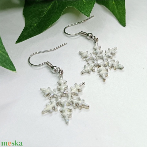 Csillogó fehér hópehely medálos lógós fülbevaló