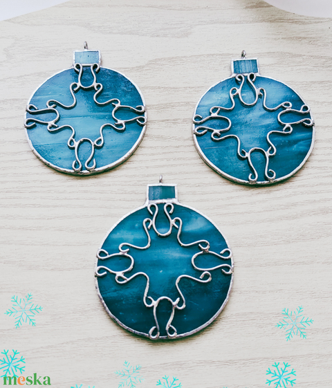 Türkiz üveg karácsonyi dekoráció szett fém motívummal