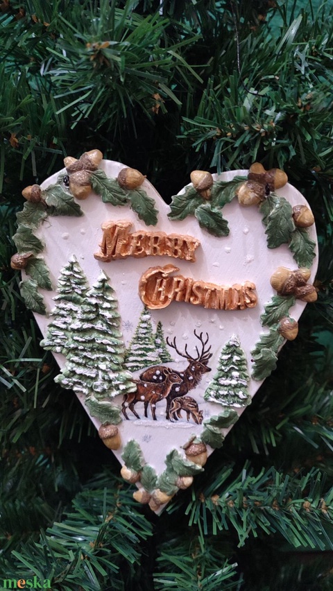 Karácsonyi szív alakú akasztós dísz szarvasokkal