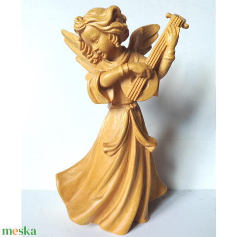 Vintage lanton játszó faragott angyalka