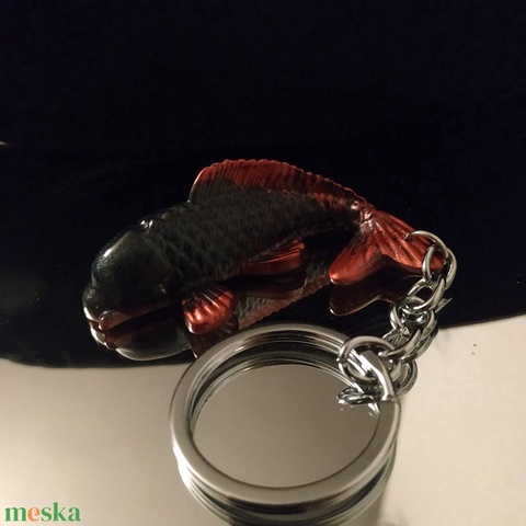 Epoxi koi ponty kulcstartó - fekete / vörös
