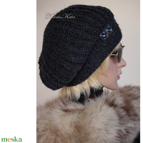 BORBÁLA / antracit - trendi kézzel kötött téli gyapjú sapka