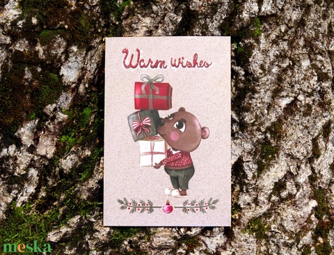Karácsonyi képeslap - Aranyos mackó, kedves angol szöveggel a hátulján