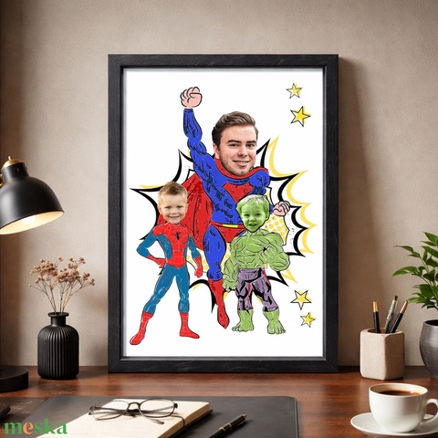 Szuperapa fiaival! Digitálisan vagy fotópapíron (A/4), keretezve - szerkeszthető ajándék - vegyes szereplők