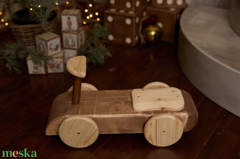 Robson finds fotózásokhoz készült antikolt fa kisautó