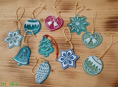 karácsonyfa dísz, karácsony, 10 darab készletben, epoxigyanta kéz díszítéssel