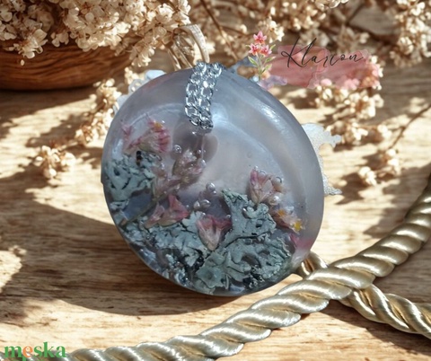 Örökre jégbe zárva, nyaklánc gyanta medállal, virággal és zuzmóval