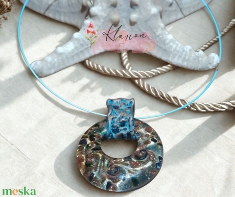 Aranyló örvény, üveg medálos sodrony nyakék