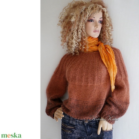 FANNI / rozsdás - exkluzív kézzel kötött finom merinó-angora + silkmohair pulóver