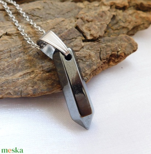Orvosi acél szerelékre akasztottam ezt a szép hematit medált.