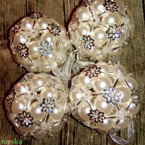 Csillogó gömbök, fehér hologramos gyöngyből készült karácsonyfadísz