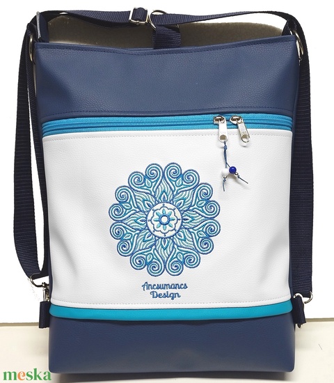 Hímzett mandalás 3in1 hátizsák univerzális táska tengerészkék-fehér(mandala002)