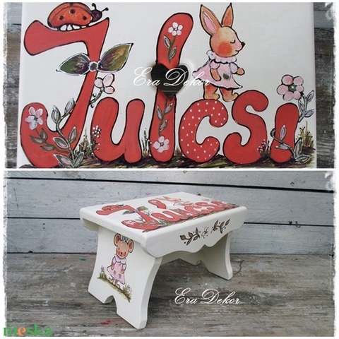 gyerekszoba bútorok, romantikus antikolt festéssel készült fa ajándéktárgyak a provence-i stílus jegyében