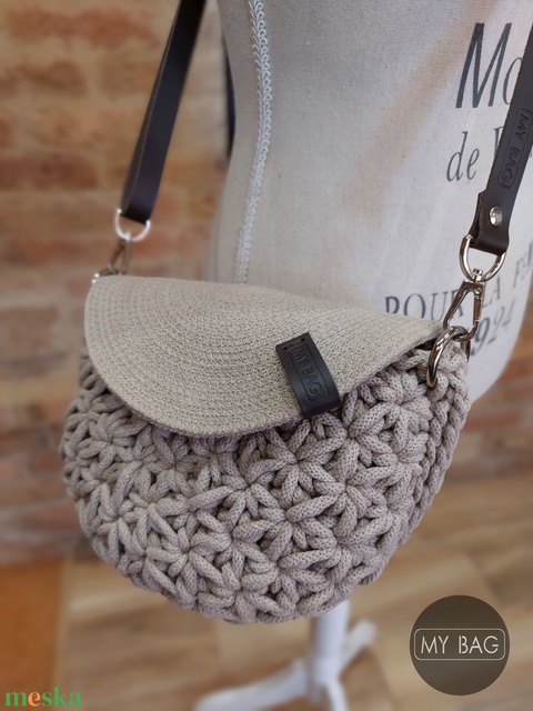 Horgolt női crossbody táska - Jázmin mintával - HOMOK