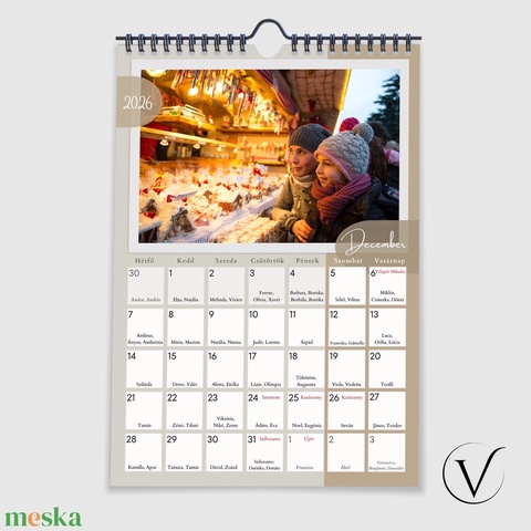 Fényképes naptár névnapokkal, ünnepnapokkal 2026