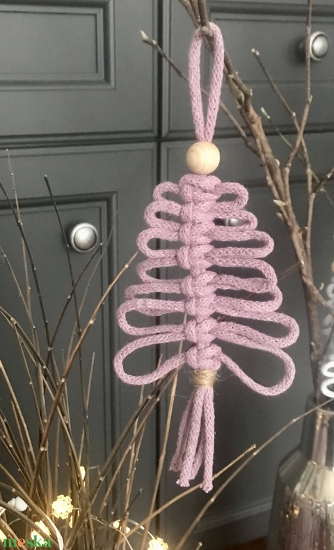 Karácsonyi dísz mályvaszín makramé zsinórfonalból